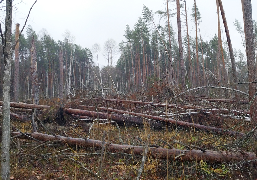Работы выполнялись по заявке лесопользователя. На территории природного объекта специалисты проводили инструментальное лесопатологическое обследование сосновых насаждений. Как правило, на территории заказника произрастают высокобонитетные устойчивые насаждения. Здесь ранее не выявлялось больших очагов вредителей и болезней. Но, к сожалению, природный фактор в виде сильного ветра не пощадил данные древостои. Повреждение насаждений специалисты выявили на площади 65 гектаров. В ходе обследования выявлено 35 поврежденных участков.